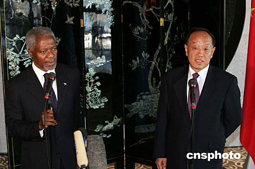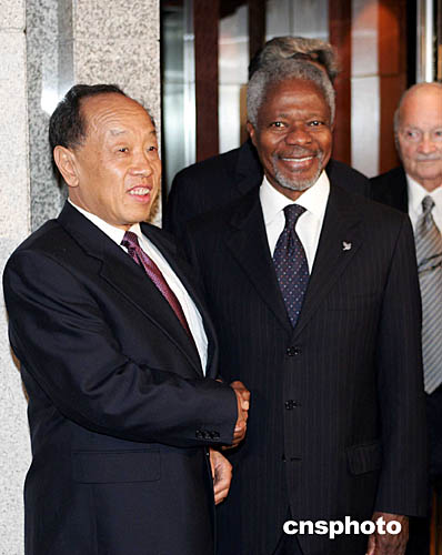 李肇星与安南会谈 促国际社会设法恢复伊拉克稳定