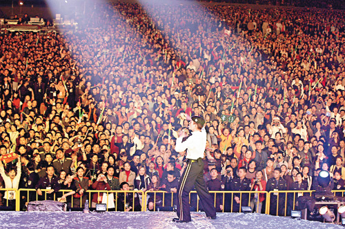 前晚在奥运中心体育场的演出全场爆满,而场外也极之壮观,于东南西北四个闸口,最少每一个闸挤了四、五千人;大会虽安排了七百名公安协助维持秩序,但公安也怕控制不到场面,为防场面失控,马上急召武警,将场馆重重围着。由于场馆内外有逾十万人群离开,堵塞了场口,“华仔”也无法于个唱后离去,要安排公安车进入后台位置来接;不过因人群太多,公安车也无法开动,花近大半个小时才能驶进场内接走“华仔”。而工作人员则于场内苦等近四个小时,才可以离开场馆返回酒店。