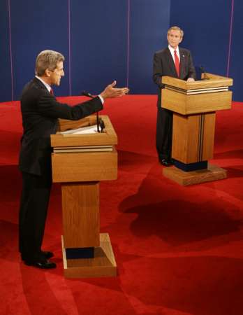 在第一次辩论中,媒体认为布什给选民留下的印象不佳,太低调、太呆板;而在第二场中,布什表情有所改善,进攻性加强,但却显得过于暴躁。在末场辩论中,布什似乎在尽量保持表情与话语的收缩自如。