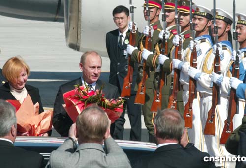 中新网10月14日电 应中国国家主席胡锦涛的邀请,俄罗斯联邦总统弗拉基米尔·弗拉基米罗维奇·普京于14日上午抵达北京,开始对中国进行为期3天的国事访问。