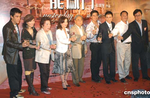 港产电影《龙凤斗》10日13日晚在香港时代广场举行龙凤激斗首映礼,《龙凤斗》台前幕后与赞助商于首映礼上举杯预祝票房旺收。作者:邓庆乐