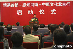 中新网10月14日电(记者 李淑国)情系首都·感知河南——“中原文化北京行”活动14日在北京启动,这是河南省在首都北京举办的第一次大型综合形象展示活动。