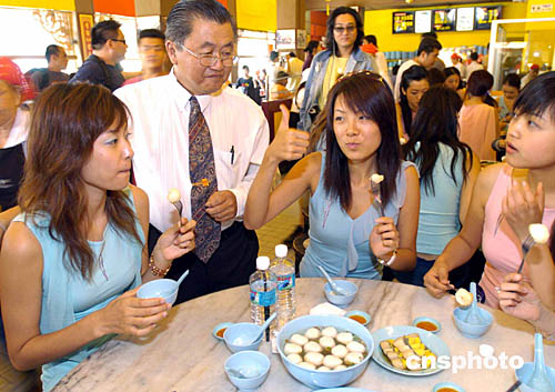 图为佳丽们在马六甲古城鸡粒饭餐厅品尝美食。