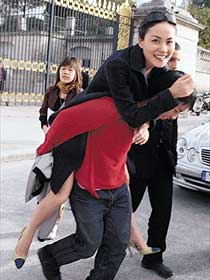 中新网10月16日电 冷若冰山的王菲,在巴黎街头突一反常态,大庭广众下向设计师撒娇,非要他背着她绕街跑一圈不可,两度表现失常。