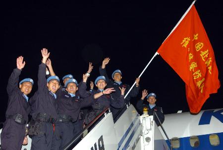 中新社北京十月十七日电 九十五名中国维和警察防暴队成员今天乘联合国专机从北京首都国际机场出发,前往海地执行联合国维和任务。这是中国政府第一次向海地任务区派遣维和警察防暴队。
