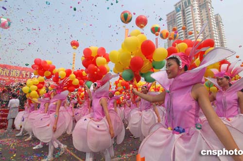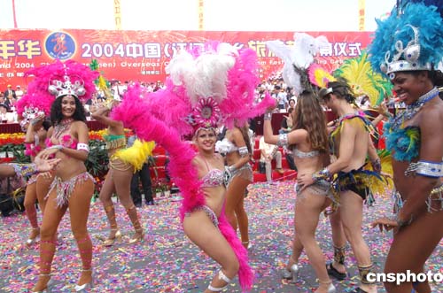 中国(江门)侨乡华人嘉年华暨二零零四中国(江门)侨乡旅游节,十月十七日在广东江门市隆重举行,来自海内外和五邑各市、区共四十二支表演队和方阵组成的二千多人的庞大表演队伍在大街上进行了浩浩荡荡大巡游。作者:罗仰明