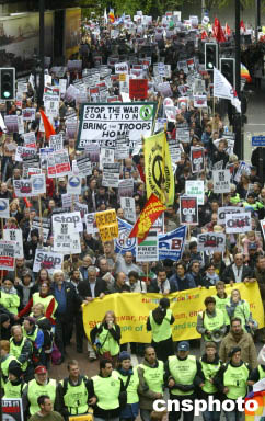 来自英国各地和欧洲大陆的数万民众10月17日在伦敦市中心举行反战示威游行,呼吁美英军队结束对伊拉克的“非法占领”。