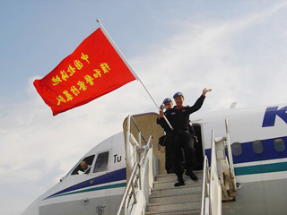 中新网10月18日电 据中国外交部消息,10月17日下午14时30分,中国派驻海地维和防暴队大部队一行共95人乘坐联合国专机安全抵达海地首都太子港国际机场,联合国驻海地有关官员及中国驻海地商代处张伯清代表前往机场迎接。