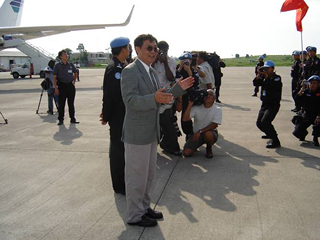 张伯清同队员亲切握手,并进行了讲话,向队员致以热烈的欢迎,并希望他们安全、顺利、出色地完成联合国交给的任务,体现中国警察的风范,为国争光。