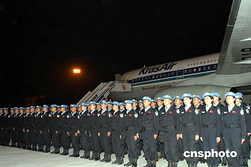 九十五名中国维和警察防暴队成员十七日乘联合国专机从北京首都国际机场出发,前往海地执行联合国维和任务。这是中国政府第一次向海地任务区派遣维和警察防暴队。这支防暴队队员平均年龄二十八岁,其中有十三名女警,来自北京、天津等四个直辖市的公安防暴总队和公安边防部队。防暴队员从今年六月以来,经过了四个多月的业务训练和外语培训。