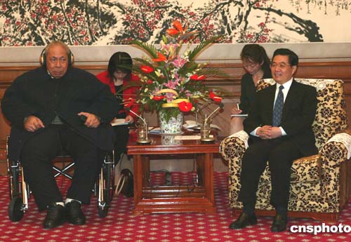 胡锦涛表示,中汤两国同处亚太地区,都是发展中国家,都热爱和平,渴望发展。两国优势互补,加强合作,有利于两国的共同发展与繁荣。中国政府愿与汤加政府共同努力,在和平共处五项原则基础上,进一步扩大两国各领域友好合作,使中汤友好合作关系长期健康稳定地向前发展。