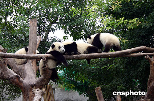 图:憨态可掬的大熊猫幼仔玩耍嬉戏