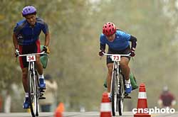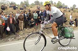 十月十九日,全国第五届农民运动会的自行车载重比赛在江西省宜春市举行。