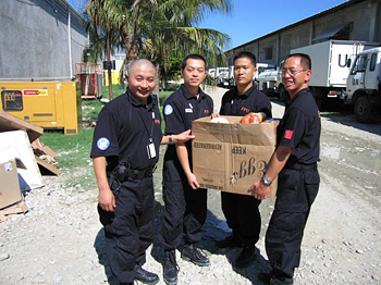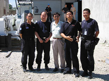 中新网10月20日电 据外交部网站消息,2004年10月19日早上,中国海地贸易发展办事处张伯清代表前往我防暴队驻地进行慰问,并向队员送去蔬菜。