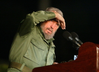 据报道,卡斯特罗20日出席了在古巴中部地区圣克拉拉市举行的某艺术学校毕业典礼,并发表了一个小时的演讲。演讲结束后,他在走下台阶回到座位时突然摔倒,其身边的保安人员随即将其扶起,让他坐在椅子上。