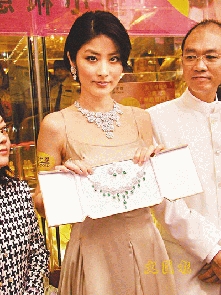 中新网10月24日电 陈慧琳昨日以米色低胸短裙,并配上价值百多万的名贵颈练和戒指,担任某珠宝店新店开幕的剪彩嘉宾,大会更送上一套价值88万的钻饰作为礼物。而Kelly剪彩完后,更为店内的一座“金鸡”揭幕,提早迎接鸡年的来临。