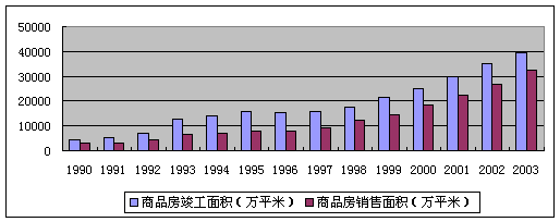 首先,从潜在需求看,我国现有城镇居民4.9亿人,到实现“全面小康”的2020年,我国城市化水平将达到55-60%,城镇居民将增长到8亿至8.5亿人。在此期间约有3-3.5亿左右的新增城镇人口需要解决住房问题。这是从新增城市人口的住房需求进行估计。另一方面,原有城市人口同样存在改善住房条件的需求。2003年末中国城镇居民人均住房面积为23.8平方米。根据国外相应发展水平的经验,根据中国过去城镇居民住房改善的速度,根据我国城市化的进程等多方面因素和目前的统计资料初步测算,我国2020年城镇居民的人均住房面积可能要达35平方米。也就是说,每个城镇居民的人均住房面积要在目前基础上再增加10平方米以上。