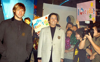 据主办方介绍,9月以来,索普为Sony产品拍摄的电视广告和平面广告在上海、北京、广州火热播映。索普此次应索尼公司的邀请来到中国,将作为Sony产品代言人参加一系列活动。虽然索普并非第一次来华,而且许多媒体和Fans已经有一定的心理准备,但是当索普亮相的瞬间,还是引来阵阵尖叫和骚动,成为名副其实的“菲林杀手”。