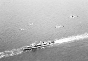 驱逐舰部队的战斗力在提升,驱逐舰官兵走向深蓝的决心和信心不断增强。2002年5月15日,中华民族历史上划时代的一页。由国产第二代驱逐舰“青岛”舰担任旗舰的海军舰艇编队,举行了举世瞩目的环球航行,先后对新加坡、埃及、土耳其、乌克兰、希腊、葡萄牙、巴西、厄瓜多尔、秘鲁、法属帕皮提港等10个国家的10个港口进行了友好访问。舰艇横跨三大洋、途经五大洲、6次穿越赤道,总计航程33126海里,历时132天,在外军和外国公众及华人华侨面前,充分展示了我军威武之师、文明之师、和平之师的良好形象。圆了中华民族的千年环球梦想,也实现了第一支驱逐舰部队官兵走向深蓝的夙愿。