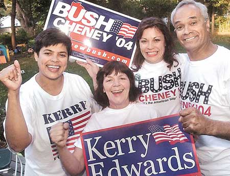 支持布什的弗里达今年38岁,她相信布什实行的低税收政策和建立强大军队的做法完全正确。但她的母亲凯特无法对她的意见表示赞同,凯特说:“噢,上帝,布什在入侵伊拉克,甚至在离开前连本·拉登都没有捉到!”