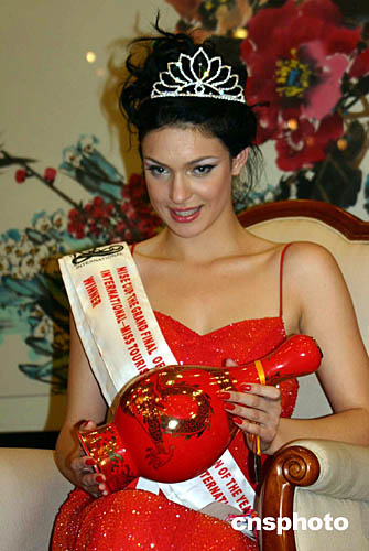 十月二十九日晚,第十一届世界旅游小姐年度皇后大赛世界总决赛在长沙国际会展中心举行,来自三十一个国家和地区的世界旅游小姐经过激烈角逐,最终亚美尼亚佳丽摘得年度“皇后”桂冠,新加坡佳丽、马其顿佳丽分获亚、季军,俄罗斯和爱沙尼亚小姐则获四五名。作者:白祖偕