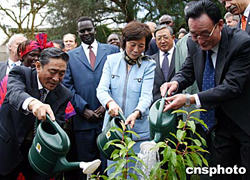 吴邦国委员长在联合国驻内罗毕总部花园种下合作之树