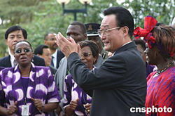 吴邦国委员长来到联合国驻内罗毕总部,受到当地著名合唱团的热烈欢迎。
