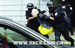 “我要装满油的汽车,把我送到安全地点!”“歹徒”用枪抵住“人质”的头,跑上三楼,从窗户内探出身子大叫:“不然我杀了他!”追捕小组一边稳定其情绪,一边针对现场情况制定了强攻方案。3名特警从5楼贴墙缓缓而下,此时“歹徒”叫嚣就要对“人质”下手,中间的特警看准时机,开枪击毙了一名还在叫嚣的“歹徒”。两旁的特警乘机跳入房间,将另一名“歹徒”控制住。战斗结束,“歹徒”一死一捕,“人质”被安全救出。