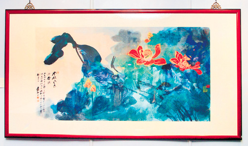 专家指出,张大千的作品一向深受欢迎,今次拍卖的《钩金红莲》是张大千于一九七五年在台湾的作品。画中的红莲是古籍记载的想象之物,而张大千以其晚年独创的泼墨彩技法,浓艳的朱荷用泥金勾勒突显出来,超凡脱俗,精丽绝世。