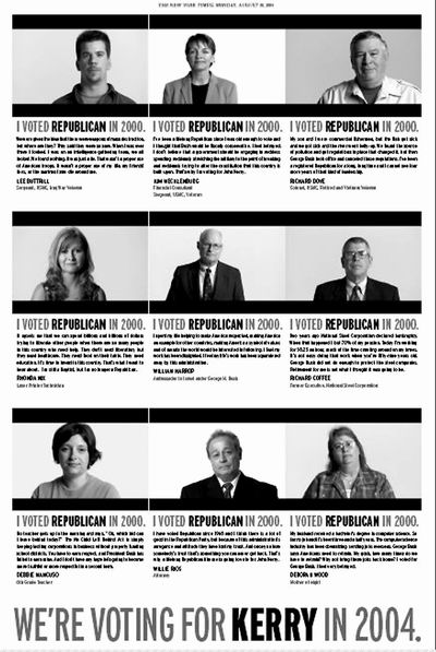 与迈克尔·摩尔的激烈攻击态度不同,美国纪录片领域的执牛耳人物艾罗·莫里斯(Errol Morris)采用了更为客观、理性的大选广告战略。这位奥斯卡最佳纪录片得主参加了美国政治运动委员会发起的“前进运动”(Move On),采访了50多位在2000年投过布什一票、如今转向克里阵营的普通公民,让他们直面镜头,诉说为什么产生了这样的立场转变。