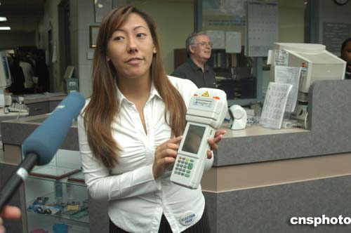 在投票现场,工作人员手拿电子记录仪,可以对登记选民身份进行核对。作者:余东晖