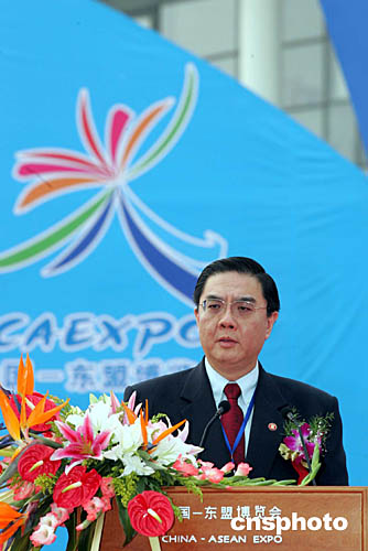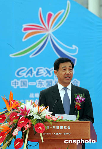 图为中国商务部长薄熙来在中国-东盟博览会开幕式上致辞。