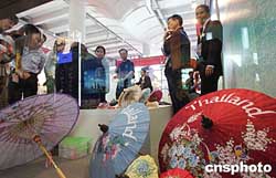 十一月四日,在广西南宁举行的首届中国—东盟博览会上,参观者为泰国展台前的民间艺术“伞绘”所吸引。展示本国、本民族的民间艺术成为本次展会的一大亮点。作者:武仲林