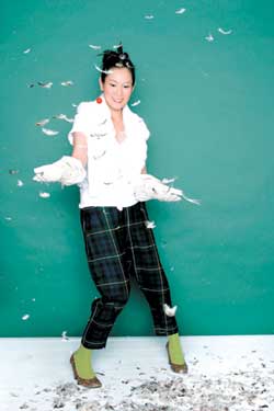 从首体主体舞台延伸出的T型延伸台长达8米,奶茶可以在其间自由与茶迷们亲密沟通。上海演唱会上,虽然也有吊钢丝,但由于舞台很小,和观众太近,只能上下活动,效果自然不很壮观。这次不同,舞台前后各有支柱,奶茶的钢丝可以上下前后移动,加上舞台前沿还有很多镂空,不时有风从那里吹过来,可以想象届时的壮观场景。