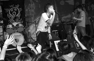 石头(吉他):其实女生往往在看现场的时候会表现得比较直接,往往会冲在最前面,而男生就躲在比较后面的地方。在我们的演唱会DVD里可以看到,男生女生人数是差不多的,只是女生更疯狂,所以会给大家这样的印象吧。