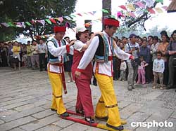 首届中国—东盟博览会在广西南宁召开期间,南宁千年古镇——扬美举行中国民俗风情游暨联欢活动,壮族姑娘的表演吸引了众多参加博览会的海外宾客。作者:阮萃