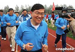 著名华商、中芯国际总裁张汝京参加上海中芯国际学校举行的“亲子运动会”。该校目前有来自世界十八个国家和地区的五百多学生就读,其中台商子女占百分之六十以上。