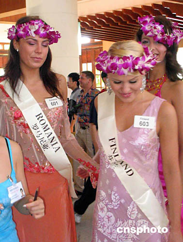 图为天生丽质、但显得有点害羞的芬兰小姐(右)和罗马尼亚小姐。