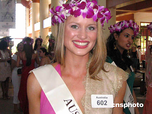 前来三亚参加第54届世界小姐总决赛的澳大利亚小姐楚楚动人,落落大方。