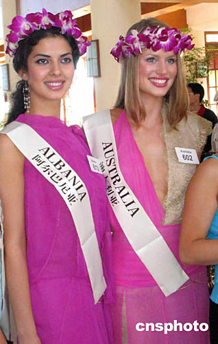 图为阿尔巴尼亚小姐(左)和澳大利亚小姐。