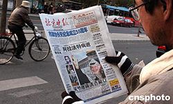 图:北京市民关注阿拉法特去世消息