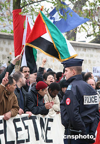 11月11日上午,数百人聚集在巴黎南郊的贝尔西军医院大门外,为刚刚逝世的阿拉法特送行。中新社记者:钟诚