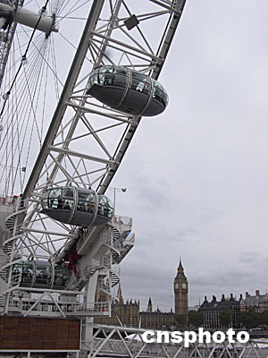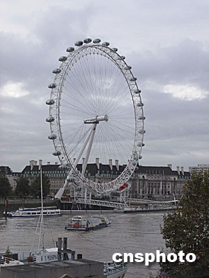 高135米的摩天大转盘“伦敦眼”,是目前世界最大的摩天轮。这座千禧年在伦敦泰晤士河畔矗立起来的目前世界最大摩天轮,每半个小时旋转一周。游客可乘坐它在城市中心的上空,俯瞰方圆25英里范围内的伦敦美景。余瑞冬摄