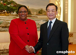 中新社北京十一月十二日电(记者李静)中国国务院总理温家宝今天下午在人民大会堂会见了来华访问的巴巴多斯副总理莫特利,双方就中巴关系交换了意见。