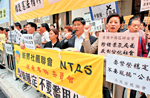 中新网11月16日电 据香港大公报报道,昨天在香港立法会政制事务委员会辩论“公投”动议之前,香港多个社团的数十名市民在立法会大楼外请愿,高叫口号强烈要求议员为香港的稳定繁荣、社会团结着想,切勿投票支持动议。