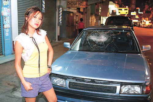 原本导演是要求阿茵执起一个大铁锤大力敲车,但因她不够力拿起大铁锤,才改为拿垒球棍。而当日他们乃在车房取景,最初阿茵以为车房地方必定又湿又热,岂料有冷气设备,所以拍摄并不是想象般辛苦。到拍摄时,阿茵因没气力打毁车子,便找来两位朋友帮手,而他们十分投入,甚至连玻璃都打破,幸而四溅的碎玻璃并没弄伤其它人。阿茵说:“其实我都想趁打烂车子时乘机发泄一下,可是自己气力不足,想发泄也不能。”