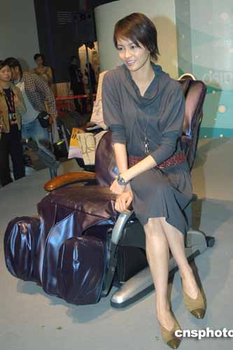 歌星梁咏琪11月16日在香港出席“OSIM按摩椅---艺术家系列”揭幕仪式,由梁咏琪设计的按摩椅将在慈善筹款节目“欢乐满东华”进行慈善拍卖,为东华三院筹款。作者:邓庆乐