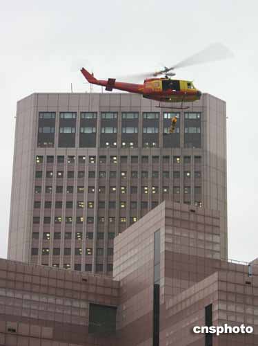 二零零四“亚洲消防首长协会”年会十一月十七日在台北举行。台湾岛内特搜队员表演直升机滞空下降。作者:董会峰