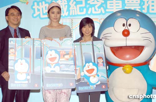 歌星陈慧琳11月17日在香港出席地铁公司《多啦A梦地铁纪念车票推广仪式》,陈慧琳与漫画明星“多啦A梦”及地铁公司高层共同展示快将推出的一套纪念车票。作者:邓庆乐