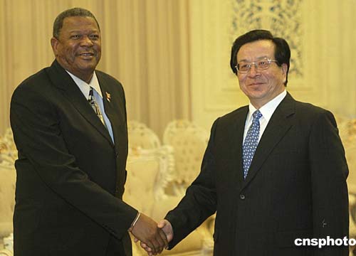 曾庆红今天下午会见了到访的安提瓜和巴布达总理斯潘塞。他说,根据中方倡议,“中国-加勒比经贸合作论坛”首届部长级会议将于明年二月在牙买加举行,中国愿与各方共同努力,使会议取得成功,以推动中国同包括安巴在内的加勒比国家的经贸关系的发展。